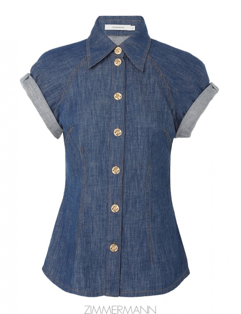 Railway Blue Zimmermann Matchmaker Denim Blouse Tops