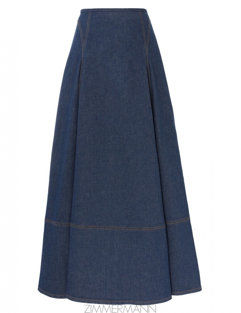 Railway Blue Zimmermann Matchmaker Denim Flare Skirt Denim