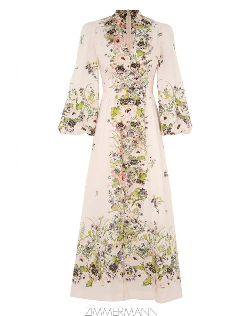 Cream Multi Floral Zimmermann Halliday Plunge Midi Dress Clothing