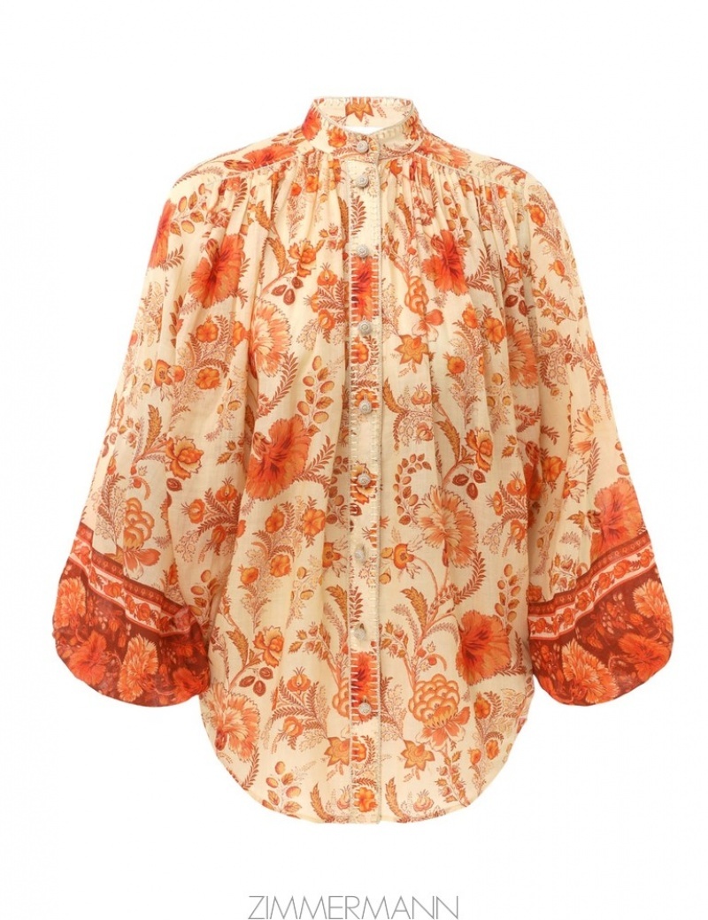 Cream/Tan Floral Zimmermann Junie Billow Blouse Clothing
