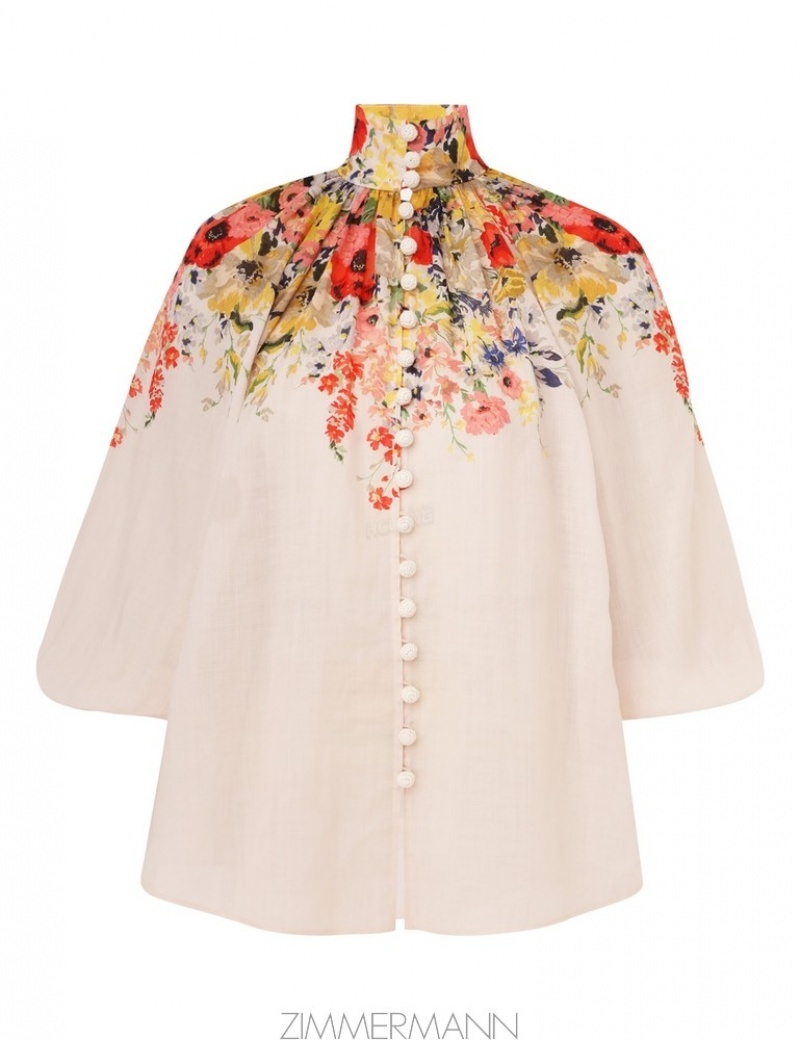 Ivory Floral Zimmermann Alight Billow Blouse Clothing