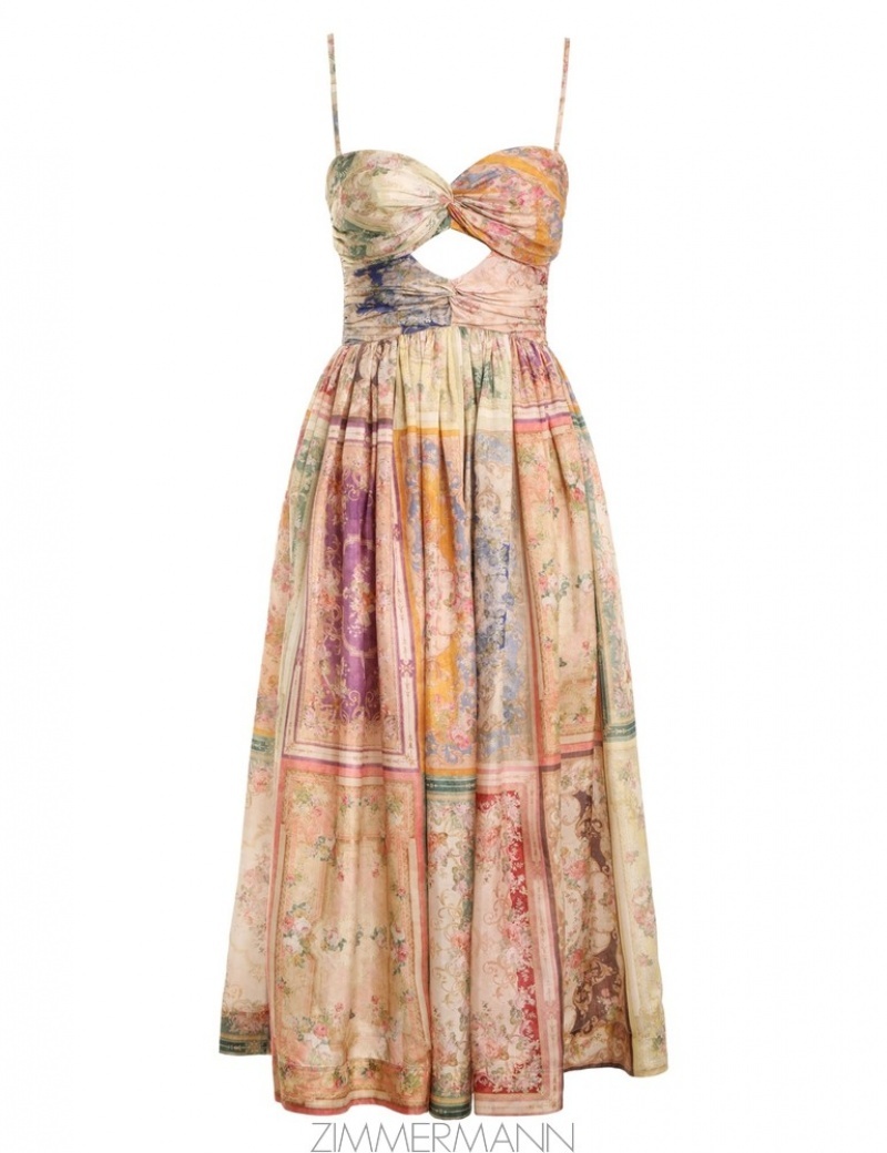 Patch Floral Zimmermann August Tie Front Midi Dress Clothing