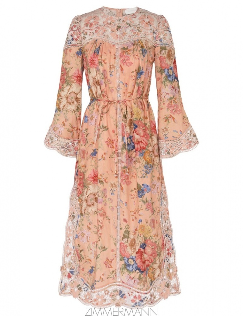 Pink Floral Zimmermann August Broderie Midi Dress Clothing