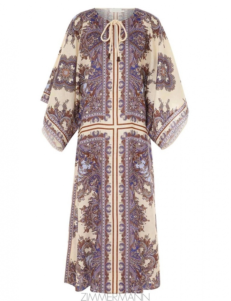 Purple Paisley Zimmermann Ottie Kaftan Midi Dress Clothing