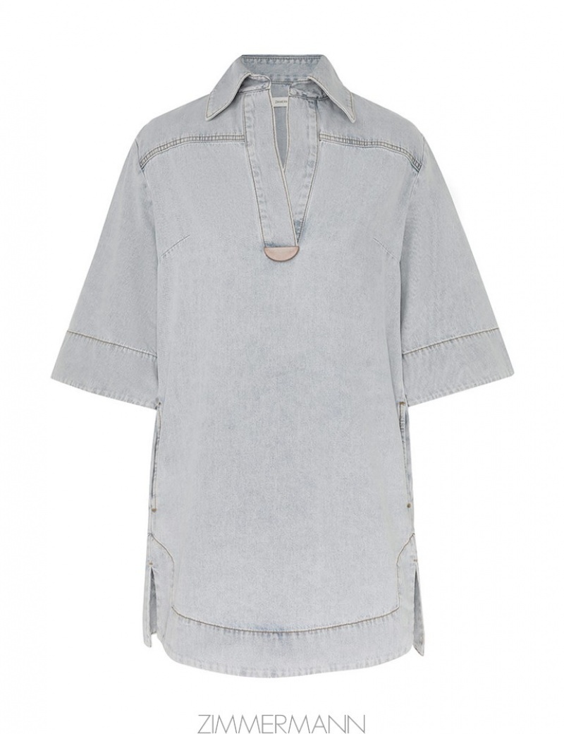 - Storm Blue Zimmermann August Denim Tunic Dress Clothing