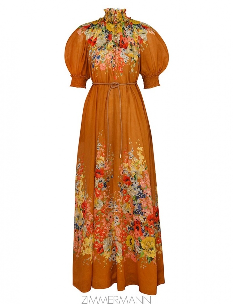 Tan Floral Zimmermann Alight Swing Maxi Dress Clothing