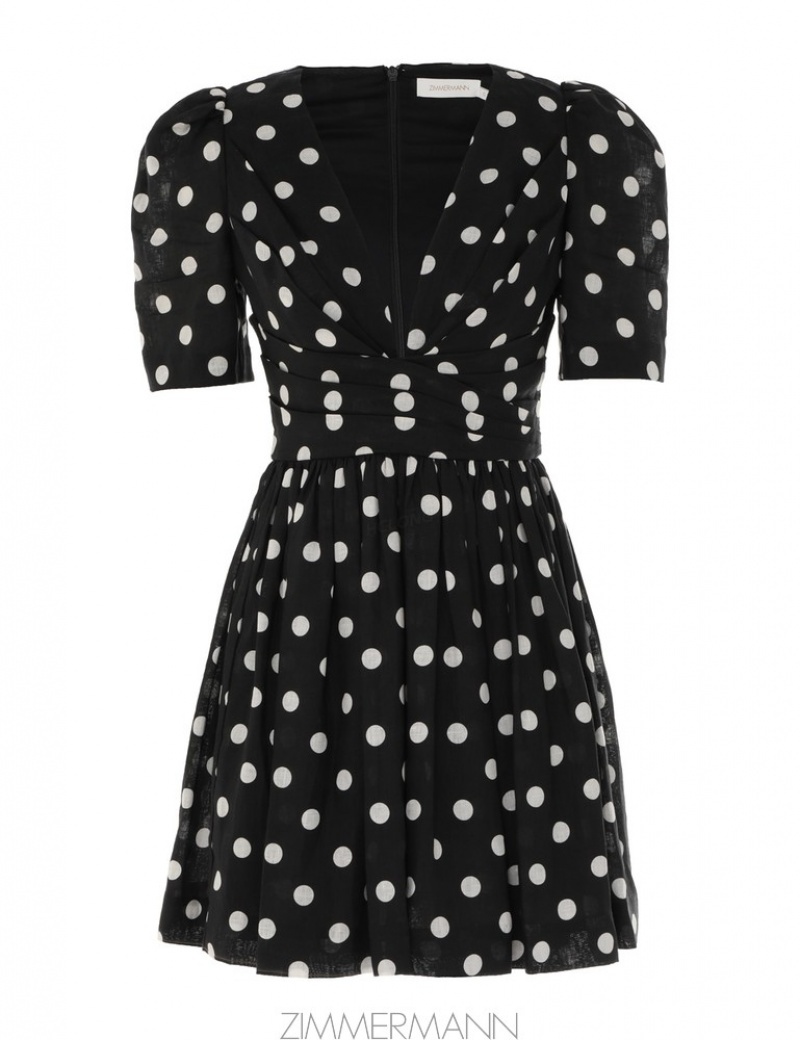Black/Cream Dot Zimmermann V Neck Mini Dress Dresses