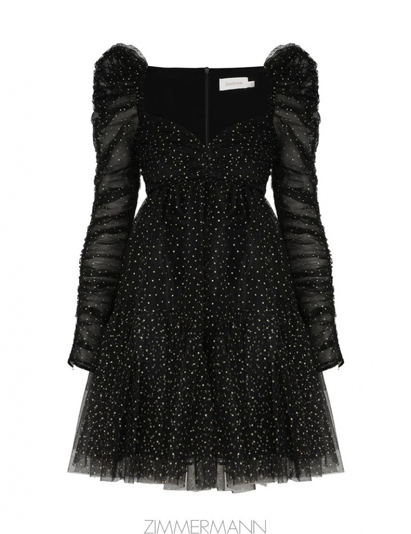 - Black/Gold Dot Zimmermann Tulle Ruched Mini Dress Dresses