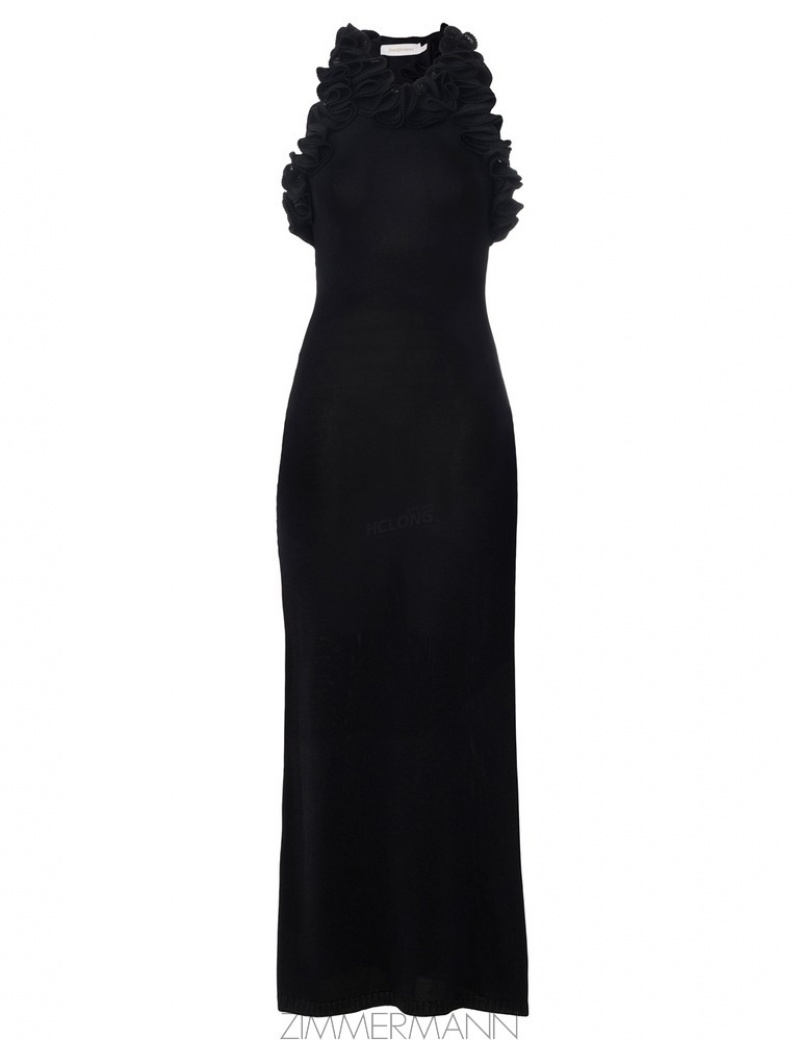 Black Zimmermann Matchmaker Ruffle Neck Midi Dresses