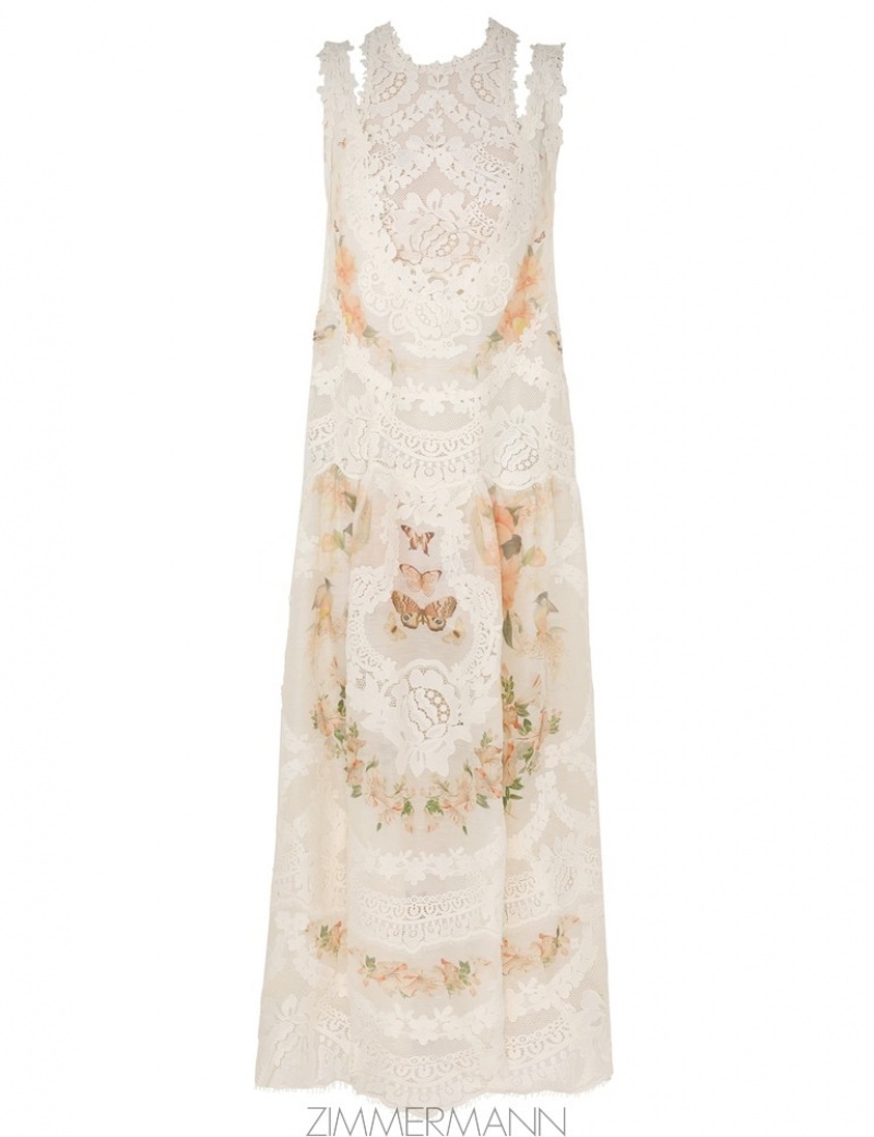 Coral Mixed Print Zimmermann Natura Lace Patch Tank Dress Dresses