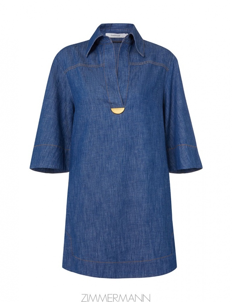 Railway Blue Zimmermann Denim Tunic Dress Dresses
