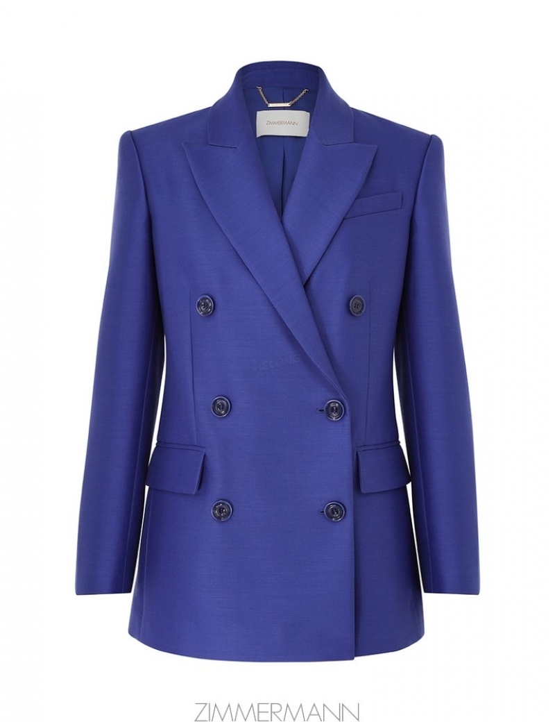The Natura Long Line Jacket in Lapis from our Spring 2024 Collection, Natura. A wool blend long line jacket featuring front patch pockets and double breasted closure.- Wool jacket