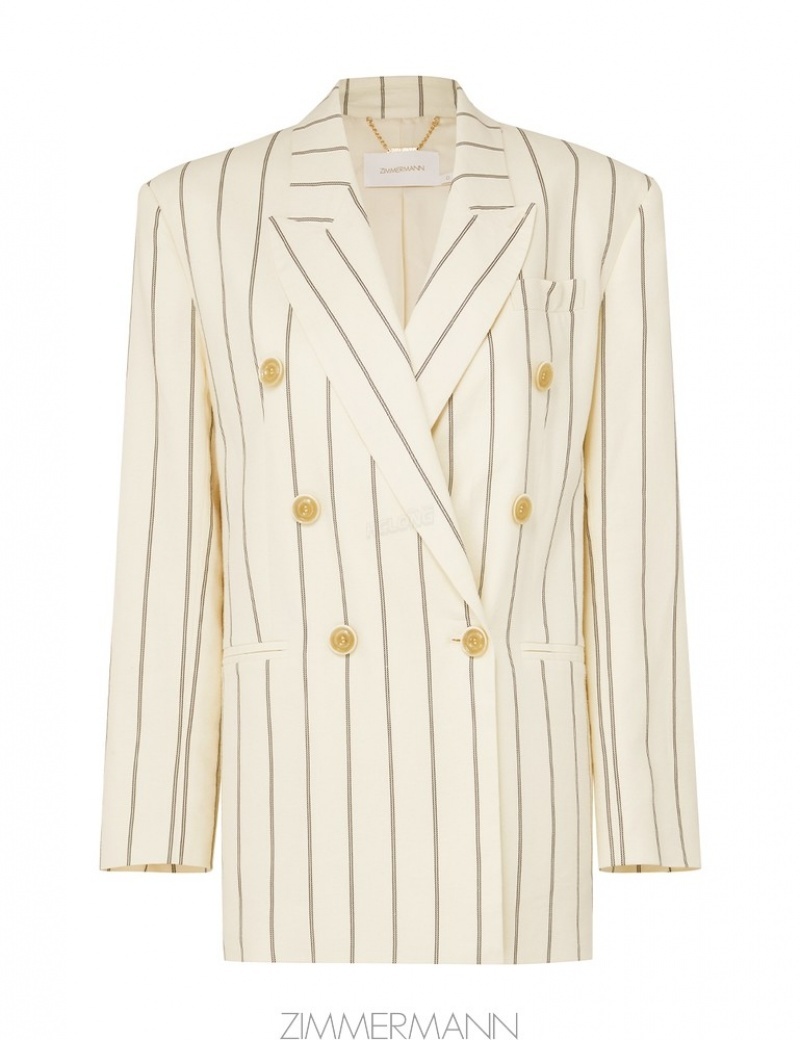 - Navy/Cream Stripe Zimmermann Natura Relaxed Jacket Jackets & Coats