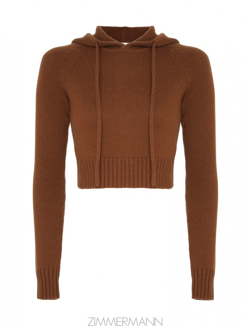 Dark Tan Zimmermann Natura Cropped Hooded Sweater Knitwear