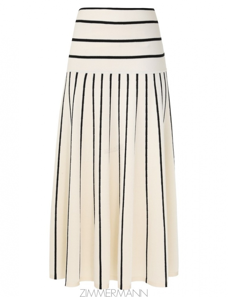 - Cream/Black Zimmermann Matchmaker Knit Stripe Skirt Skirts