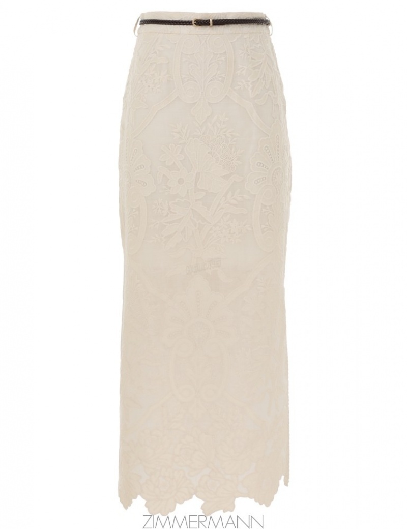 Cream Zimmermann Ottie Embroidered Midi Skirt Skirts