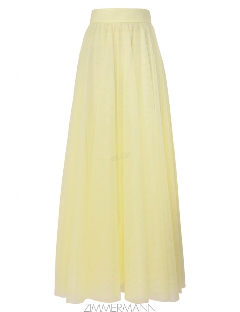 The Tulle Skirt in Lemon from our Resort 2024 Collection, Matchmaker. A midi skirt featuring a high waist and raw hem.- Midi skirt