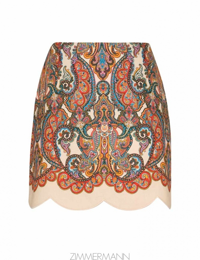 Multi Paisley Zimmermann Ottie Scallop Mini Skirt Skirts
