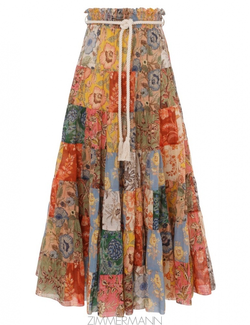 Patch Floral Zimmermann Junie Tiered Midi Skirt Skirts