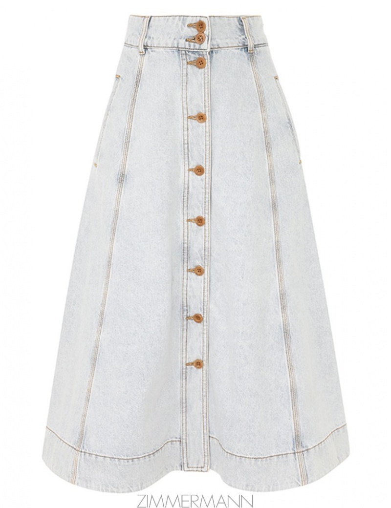Storm Blue Zimmermann August A Line Denim Skirt Skirts
