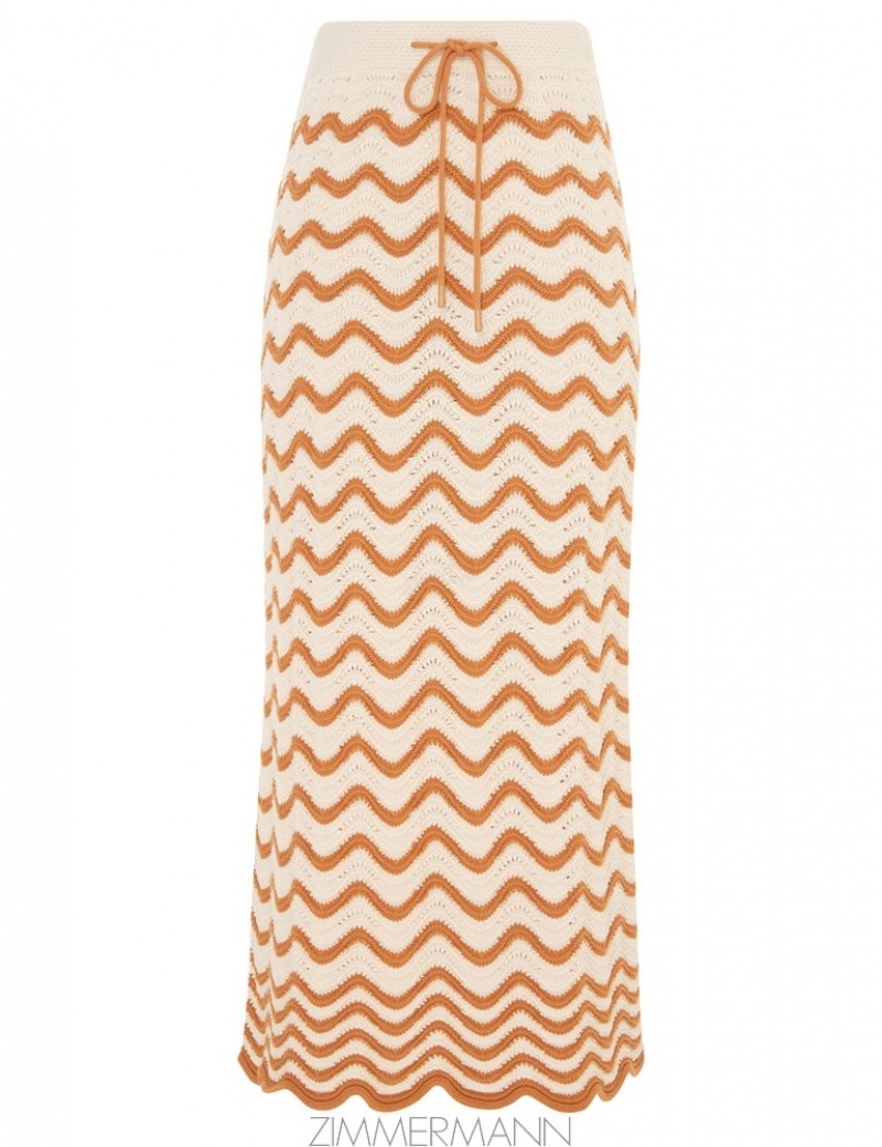 - Tan/Cream Zimmermann Junie Textured Knit Skirt Skirts