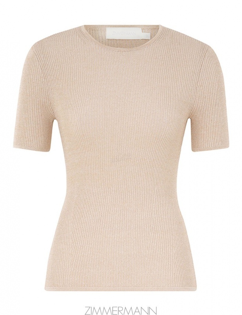 - Cream Lurex Zimmermann Halliday Rib T-Shirt T-Shirts