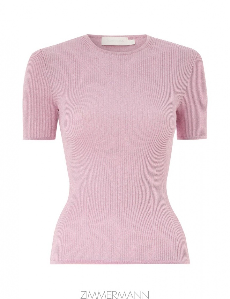 - Dusty Pink Lurex Zimmermann August Rib T-Shirt T-Shirts
