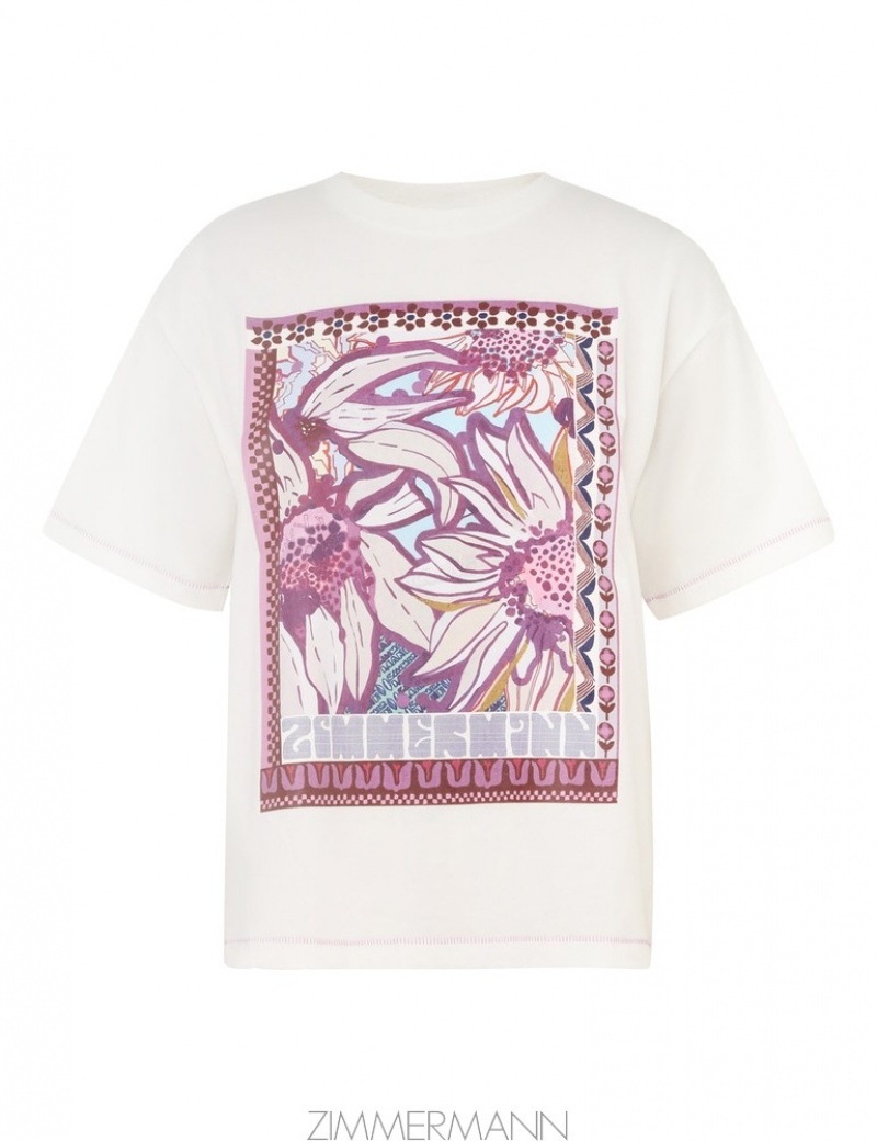 Light Cream Zimmermann Acadian Printed Relaxed Tee T-Shirts