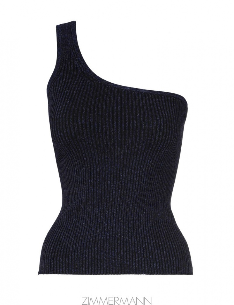 Navy Lurex Zimmermann Alight One Shoulder Top Tanks & Camis