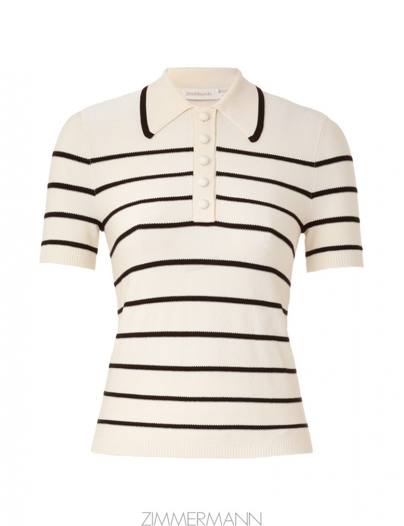 - Cream/Black Zimmermann Matchmaker Knit Stripe Polo Tops