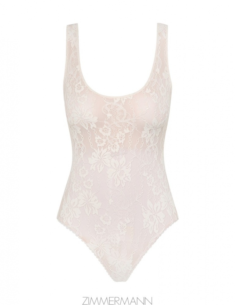 Cream Zimmermann Lace Scoop Bodysuit Tops
