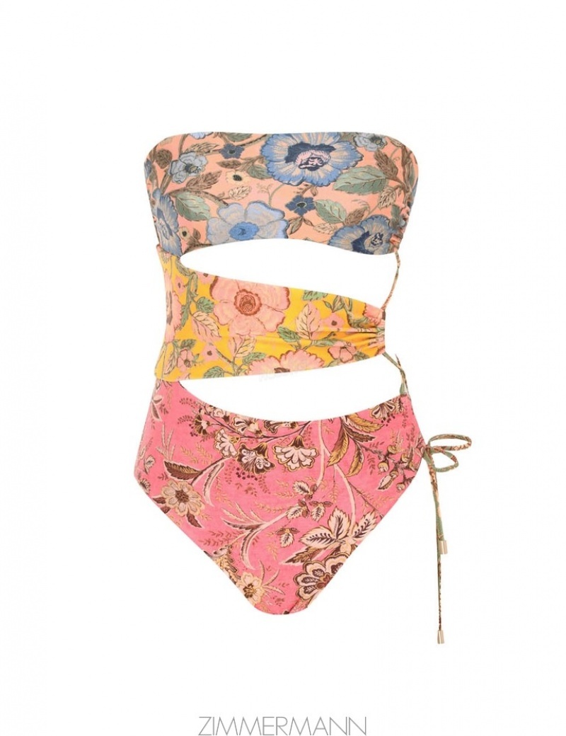 Spliced Zimmermann Junie Lace Up Cutout 1PC One Pieces