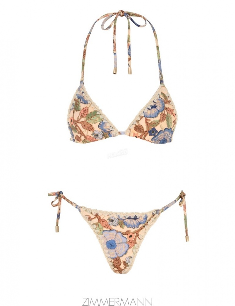Ivory/Blue Floral Zimmermann Junie Crochet Edge Bikini Bikinis
