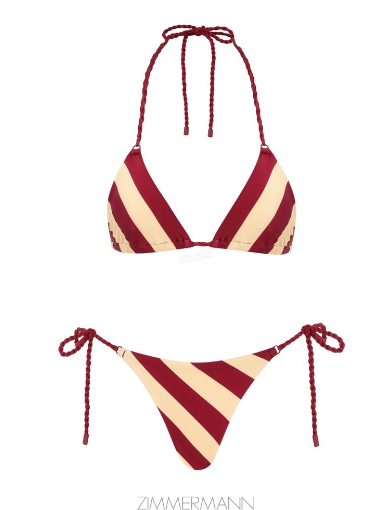 Ruby/Cream Stripe Zimmermann Alight Rope Trim Mini Tri Bikinis