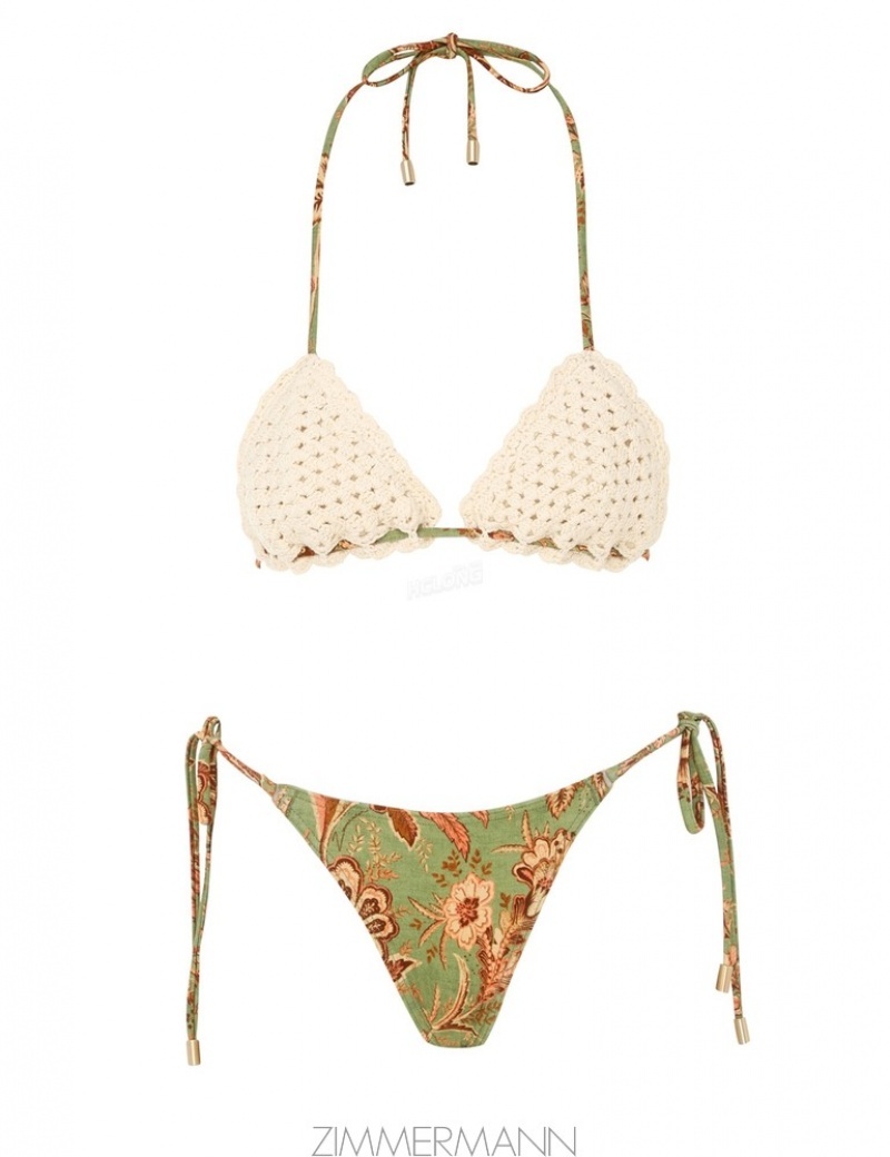 Sage/Brown Floral Zimmermann Junie Chevron Crochet Bikini Bikinis